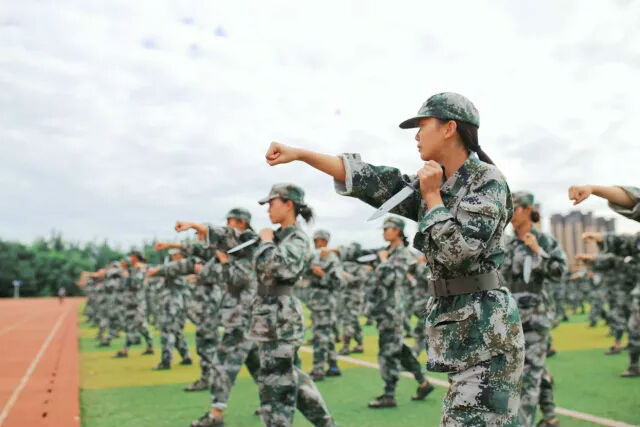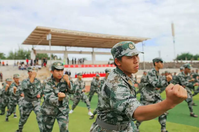紧接着军训科目汇报表演。匕首操、擒敌拳、手型、步型、攻击、防守技法展现擒敌拳的魅力、自救互救演练。刺杀操,军中骄子、校园精英、铁血特训、谁与争锋。女子匕首操和自救互救演练是今年军训的新增科目,女子匕首操充分展现了他们良好的精神面貌,手持战斗匕首,传承先辈实战经验,夺取战斗胜利;战场自救互救演练,用知识守护生命;全体新生还进行了感恩的心手语表演,常怀一颗感恩之心,生活处处充满阳光。