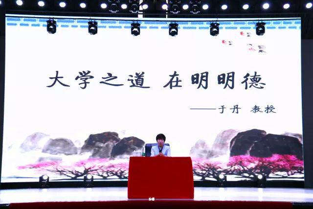 “大学之道,在明明德,在亲民,在止于至善。”于丹引用了《大学》中的开篇,这是儒家教育思想的精髓,以彼“大学”来开示此“大学”的要义。于丹认为,大学教育的最基本宗旨,不在于让学生得到了多少知识,而在于让学生领悟人性之中原有的光明美好,拥有明辨是非的能力。讲座中,于丹老师分别从儒、道文化为切入点深刻讲解人与社会、人与自然、人与自我的关系,劝诫同学们时刻保持清晰的分辨力、饱满的好奇心、开放的接纳性,不断提高自身的眼界、格局。她借用先贤之语“先行其言而后从之”,期望学生先实践后表达,才可以取信于别人。