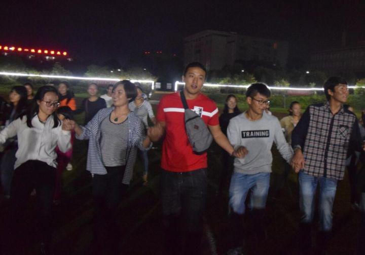 讲话结束后,刘风明校长切开学校定制的“大月饼”,并为在场的同学一一分发。大家一起共享节日美食,进行热烈互动。当彝族歌曲《七月火把节》节奏响起,刘校长、在场的老师们和同学们手拉手,围成一个圈,踏着欢快的节拍,一同跳起经典的民族舞蹈。场面一片欢腾,掌声、叫好声不断。除了歌舞互动外,活动还穿插了很多游戏,师生们都沉浸在欢声笑语中。