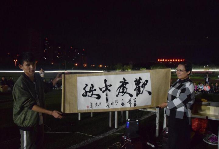 每逢佳节倍思亲,校园中秋情意浓。今晚,学校执行校长刘风明博士来到运动场看望慰问在校过节的同学并参加联欢活动。刘风明校长为同学们送上中秋祝福。她说“今天部分同学第一次不在父母身边过中秋节,是因为你们长大了,你们进入了大学,变得独立和自强,你们的父母会为你们的表现感到自豪和骄傲。”校长鼓励的话语博得了同学们的掌声。