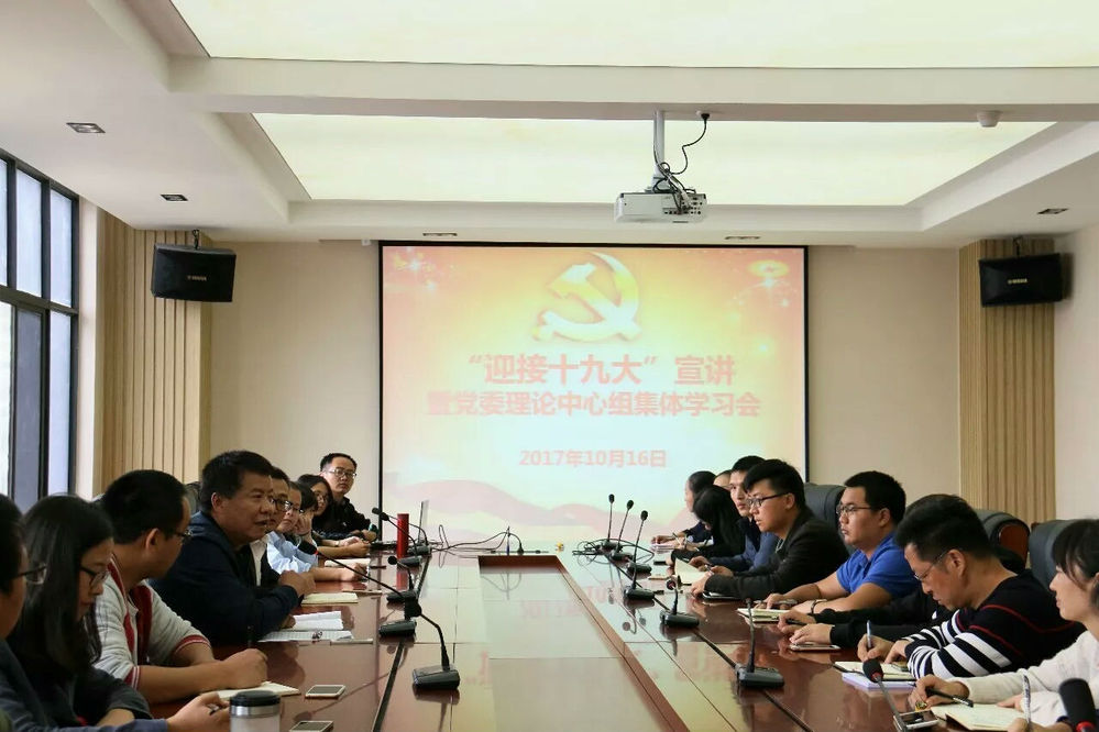 为统一思想,凝聚共识,以优异成绩迎接党的十九大胜利召开,10 月 16 日下午4时,我校隆重召开“迎接党的十九大宣讲”暨党委理论学习中心组集体学习会。学校党委委员,纪纪委委员,校级党委领导干部,各党支部书记等人集体参加学习。