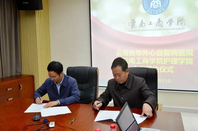 2017年12月13日,我校与云南省阜外心血管病医院在行政楼518会议室举行建立战略合作签约仪式。此举将进一步加强双方校企合作办学、提高人才培养质量的需要,有助于解决我校护理学院护理专业学生的毕业实习问题,同时为护理学院专任教师提供了临床实践的场所,对强化护理学院的专业建设和发展具有极其重要的意义。