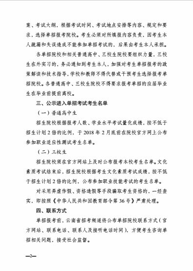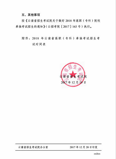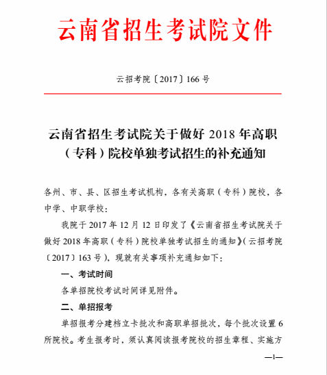 云招考院〔2017〕166号(云南省招生考试院关于做好2018年高职(专科)院校单独考试招生的补充通知)