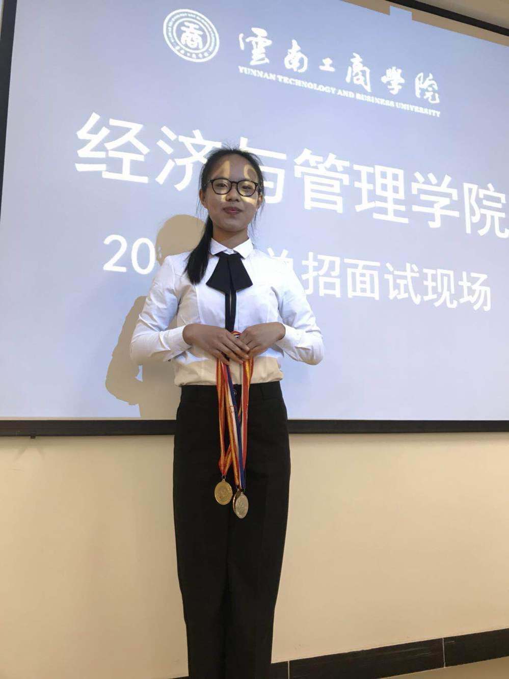 张入芳同学通过讲述自己在云工商的学习、获奖、丰富多彩的校园生活经历,向参加此次单招的同学们指引了努力的方向,增强了对云工商大学生活的期待。演讲简短而有说服力。朋辈式的交流让同学们倍感亲切!同时,也增强了同学们对云工商的认同感!