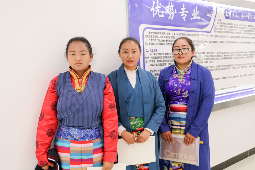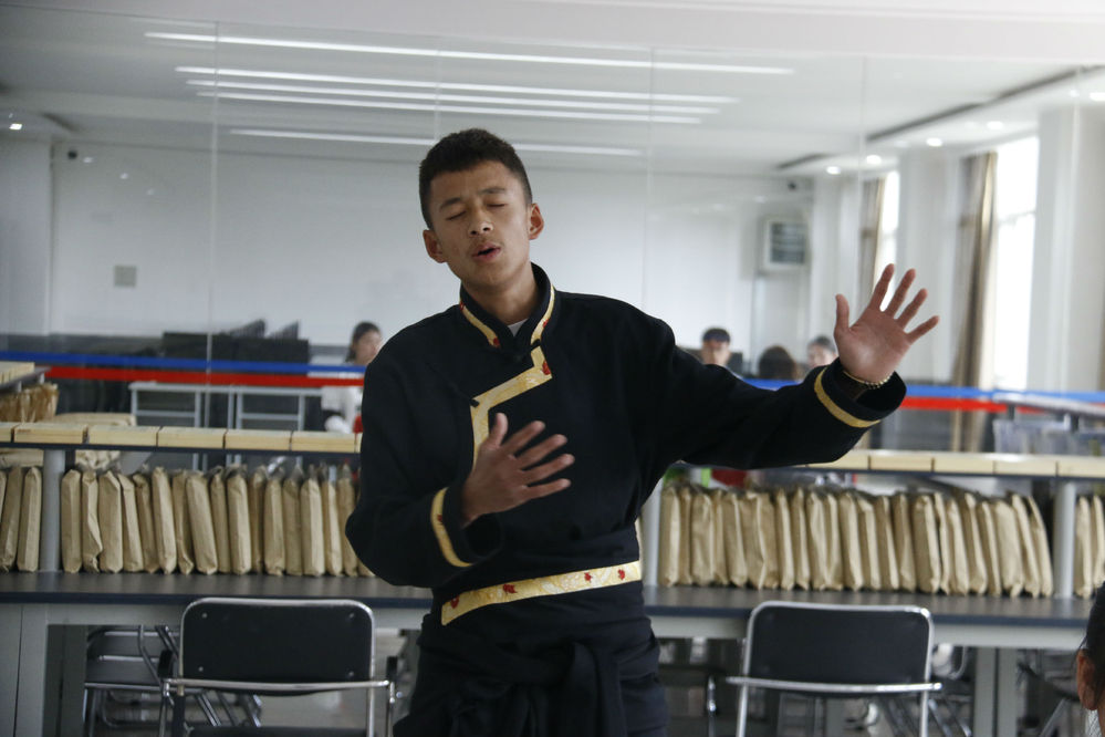 身着长袖、宽腰、大襟藏服的和贵生同学拿着自己在高中获得的荣誉证书来参加面试。他表示,云工商占地面积非常的大,而且校园环境优美。非常希望自己能被录取。