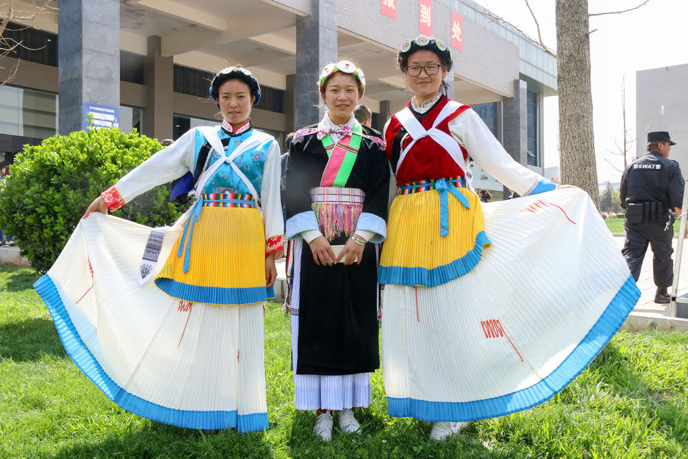 单招第二天,人气持续爆满,人群中,最大的亮点要数那群身着少数民族服装的考生了,花腰傣、彝族、傈僳族、傣族、白族......来自全省各个州市的少数民族考生齐聚云工商。他们的到来,在云工商校园挂起来一阵旋风,也给这次单招考试带来了一抹炫丽的色彩,惊艳了面试考官,也引来了大批同学的围观拍照。