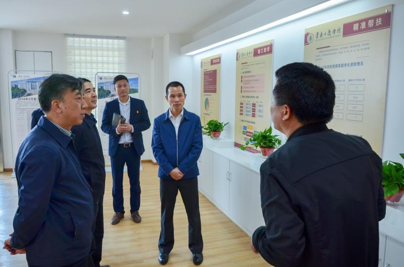 调研组先后来到学校图书馆、党建服务中心、实验(训)室楼等地,重点了解了学校发展、365大学、精准扶贫、实验(训)室教学等工作情况。在党建服务中心,于波书记向考察组汇报了学校对学生实施精准扶贫情况。我校按照求学路上一个都不能少的理念,通过精准识贫、精准资助、勤工助学、帮扶就业建立了贫困学生入学、就读、就业全程、全覆盖资助体系,通过扶贫先扶智、扶贫必扶志,实现了贫困家庭子女都能接受公平有质量的教育,阻断贫困代际传递。