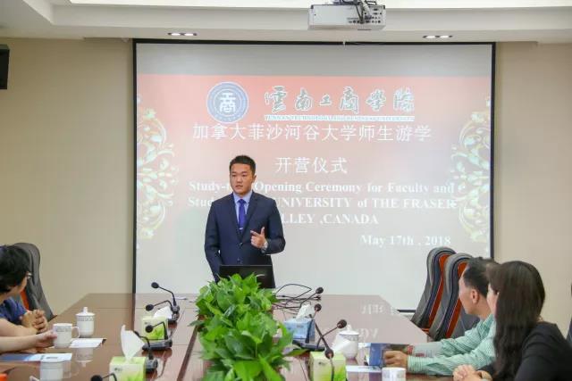 为迎接远道而来的加拿大外宾,促进中外文化相互交流,5月17日,在行政楼518进行了加拿大菲莎河谷大学师生游学开营仪式