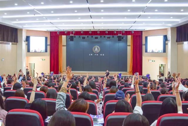 讲座中,邢园长用被蚊子叮,大家拍手的游戏进行了全场互动,并巧妙融入了游戏背后的学前教育方式理念,将全场气氛推向高潮。