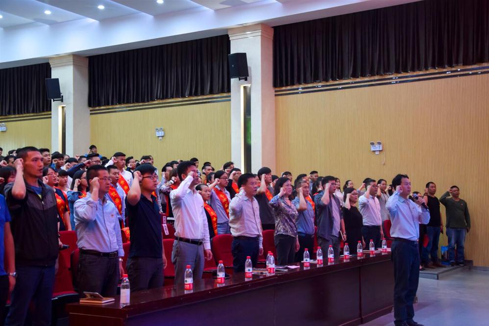 在雄壮的国歌声中大会拉开帷幕,党委委员、宣传部部长孔祥刚同志宣读了吸收预备党员的名单。106名新党员在党委委员、纪委书记魏佳平的带领下,高举右臂、面向党旗,用铿锵有力的语言庄严宣誓。