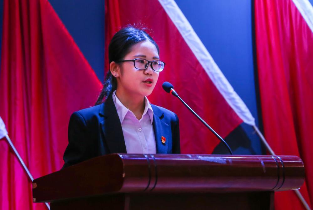 颁奖仪式后,新党员代表陆尹晴发表讲话作为一名预备党员应该时刻铭记四点要努力。努力提升自己的思想。要感恩。感恩所遇到的一切事情,珍惜青春,珍惜机会。要务实。时刻做到自重、自信、自立,始终保持作为一名共产党员的先进性。要谦虚。在平时要做到批评与自我批评相结合,保持谦虚谨慎的作风。