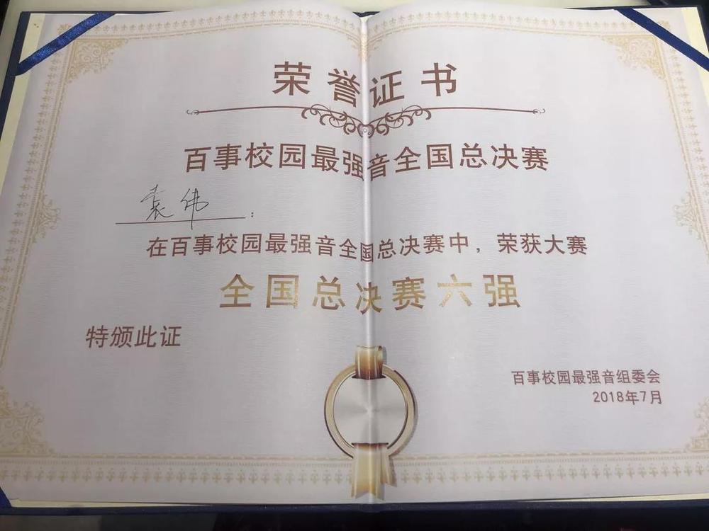 第二轮个人PK赛中袁伟挑战超高难度的歌曲《烟火里的尘埃》得到评委高度赞扬。最终获得全国六强荣誉称号,同时袁伟同学也得到多家媒体,文化传媒公司的认可,8月中旬,他将有可能被邀请参加上海迪士尼乐园大型晚会演出,陆续会有更多的演出,更多的舞台尽情展示。