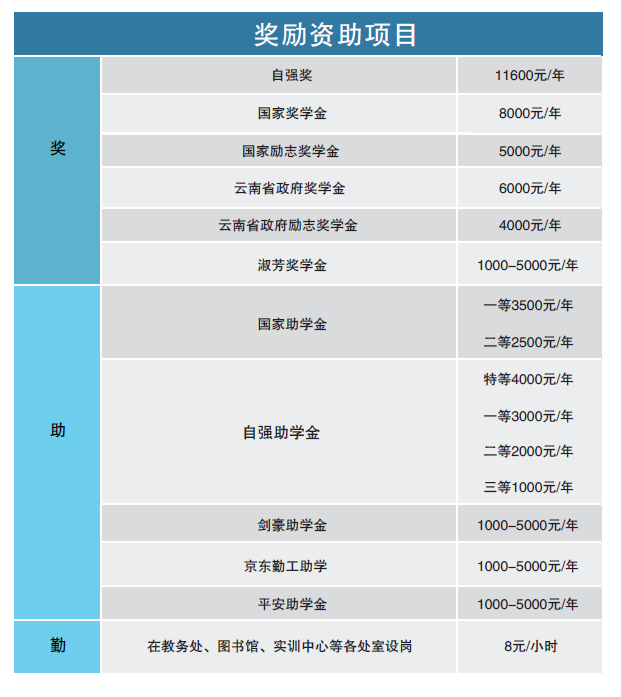 为促进在校生奋发向上、积极有为,减轻家庭经济困难学生的负担,保障学生顺利完成学业,云工商建立了以(奖、助、贷、勤)为主体的资助体系,扩大受助学生比例、提高资助水平,确保家庭困难学生通过不同渠道获得资助。