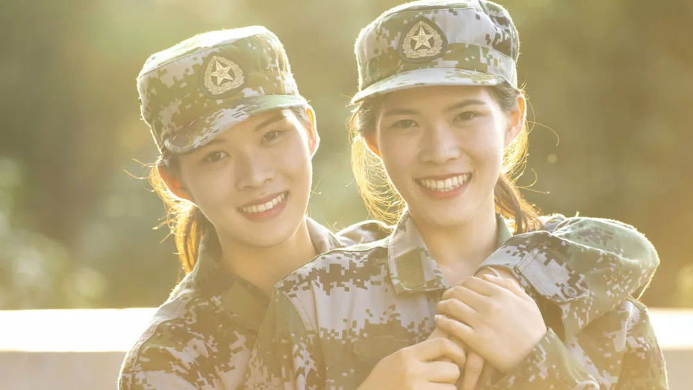 军训场上,站军姿、踏正步、唱军歌,充满朝气活力的姐妹俩表现出色。据说,指导她们训练的教官看着两人一模一样的侧面和极其默契的动作,也经常找不出姐妹的区别,用了三天,才把姐姐和妹妹分清楚。看来!训练场上分辨姐妹花也成了一种乐趣啊!