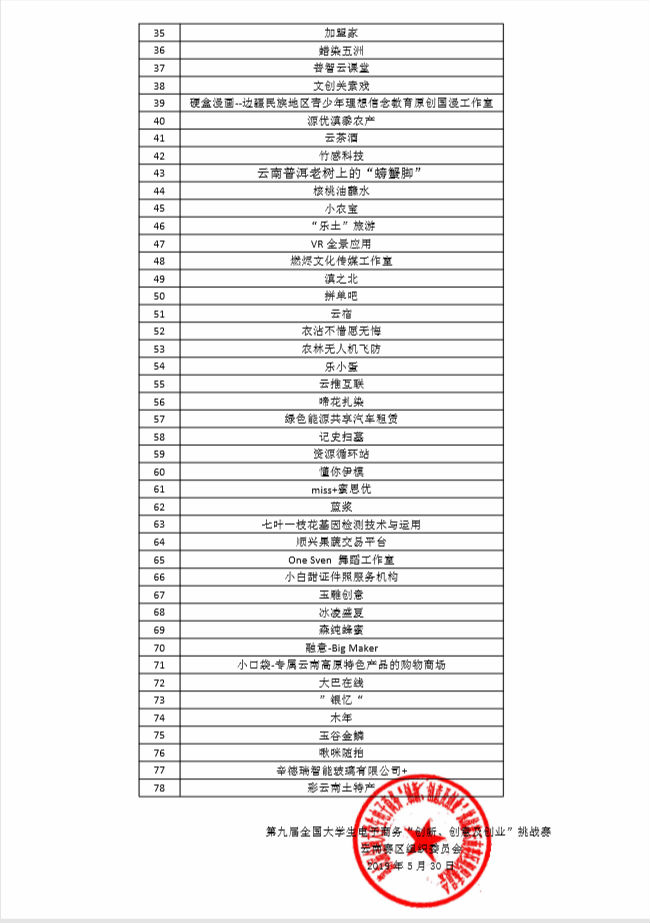 第九届全国大学生电子商务创新、创意 及创业挑战赛 晋级省赛名单