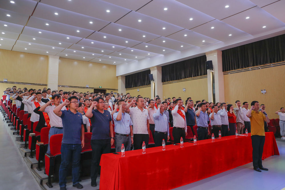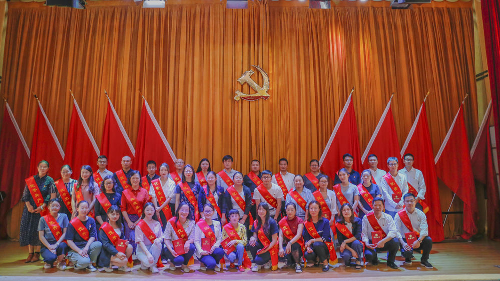 大会在庄严的国歌声中拉开帷幕。学校党委委员、宣传部部长孔祥刚宣读了《关于批准廖常通等109名同志为预备党员的通知》以及《关于表彰先进基层党组织、优秀党务工作者、优秀共产党员的决定》。现场,109名预备党员面向党旗庄严宣誓,表达了对党的深厚感情和为党的事业奋斗终身的决心,第一排的参会领导为新党员代表佩戴党员徽章,这一庄重的时刻标志着又一批优秀预备党员光荣地加入了中国共产党。之后,领导们为优秀党员、优秀党组织进行了颁奖。