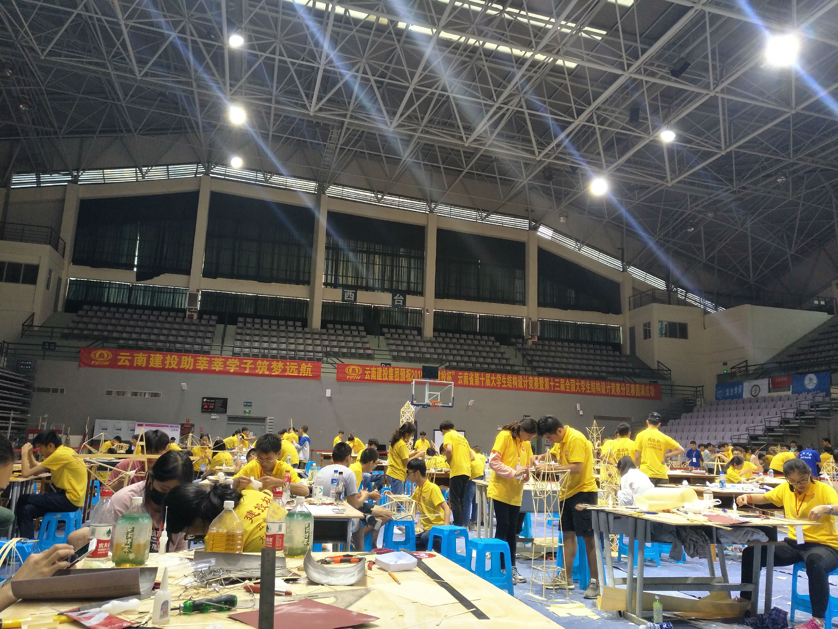 赛题不熟悉,比赛经验不足,没有令建工学院师生们灰心。同学们在老师的带领下刻苦钻研,参照身边的输电塔与赛题的要求反复探索模型结构,备赛过程中,结构模型设计形式就尝试了十二种之多。师生们放弃周末、放弃假期,每天练习到晚上10点多,最后两周每天练习到11点半,在反复的练习和改进中,将结构的模型从总重550克,承载12公斤的拉力,改进到了模型总重320克,承载20公斤的拉力。同学们在反复的尝试中,不断熟悉材料的性能,不断改进结构形式,最终取得了胜利。