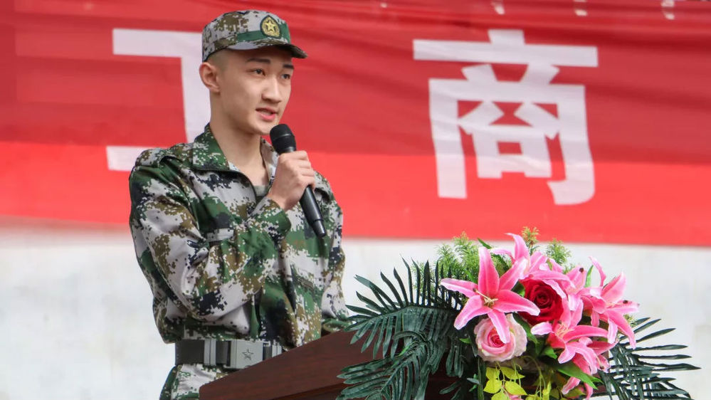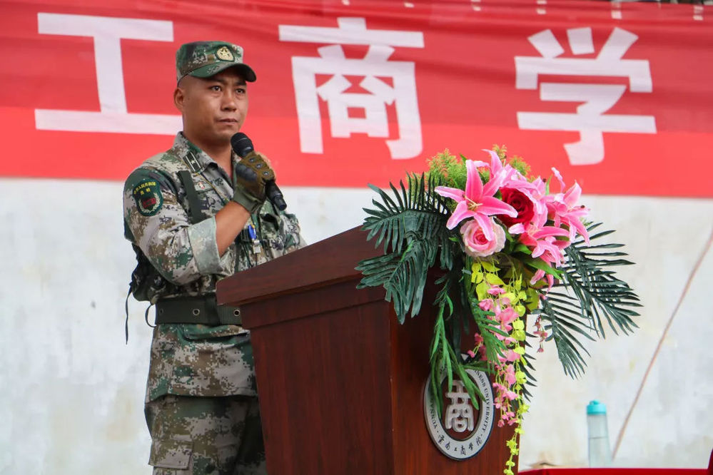 他说,军训作为大学的第一课,是成长的必要阶段,希望新生们把大学美好生活的第一章留给军训,在军训中放飞自我,展示自我。