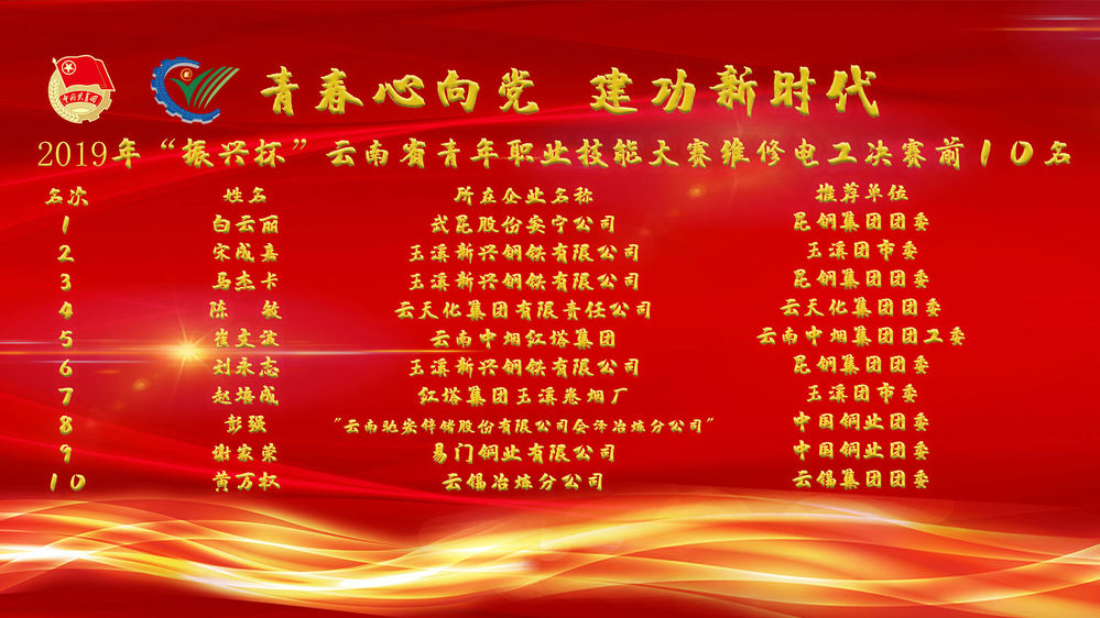据悉,经过各州市和省内有关企业、院校的层次选拔,共有96个代表队、217名选手参加了最终的省赛。赛场上,参赛选手锐意进取、奋勇拼搏,表现出扎实的技术功底、高超的技术水平,纷纷展露出自己的拿手绝活,形成了你追我赶的竞赛场面,用实际行动展现了当代青年职业技能人才的风采。省人社厅将此次大赛定位为省级一类竞赛,在省赛中排名前列的选手,除了可以获得相应的职业资格晋升之外,排名前10位的,还将由团省委授予“云南青年岗位技术能手”称号;排名前3位的,将由省人社厅授予“云南工匠”称号,并代表云南省出征“振兴杯”全国大赛。这既是对获奖选手的一种鼓励,也是对选手多年努力的一种肯定,更体现了省委、省政府对青年职业技能人才重视和关心。