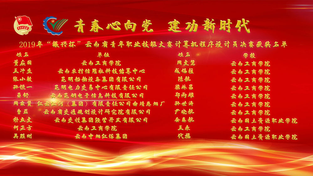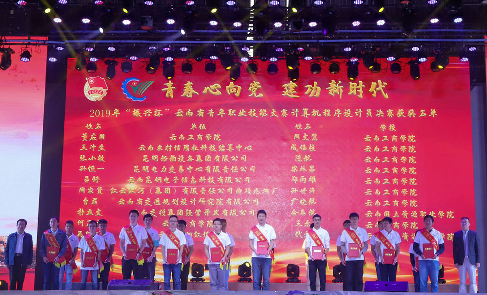 在这金秋时节、丰收的季节里,“2019年“振兴杯”云南省青年职业技能大赛——计算机程序设计员决赛”经过两天紧张、有序、激烈的比赛顺利落幕,也标志着2019年“振兴杯”云南省青年职业技能大赛”全部赛项圆满结束。