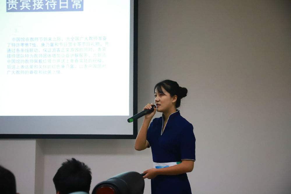 世园会带队老师王雪涵介绍,继1999年昆明世博会后,时隔20年,中国举办第二个A1级别的世界园艺博览会——2019年中国北京世界园艺博览会。本次博览会以“绿色生活,美丽家园”为主题,于2019年4月29日至10月9日举行。在北京延庆面积503公顷的园区内,共有全球110个国家和国际组织参展,举行了100余场国家日和荣誉日、3000多场民族民间文化活动,吸引了近千万人次参观,展出规模之大、参展方数量之多,刷新了A1类世园会历史纪录,在世界园艺博览会发展进程中具有里程碑意义。本次世园会,共青团中央直属企业——中青旅作为世园会全球合作伙伴,提供了超过3000人的专业运营团队“小水滴”,我们的同学作为小水滴参与到本次盛会当中,承担了部分运营工作,包括各场馆运营、游客服务与票务、贵宾接待、国际竞赛、安保等多个板块,成为了服务世园会不可替代的重要力量。