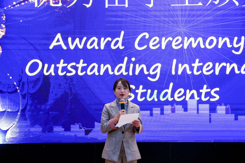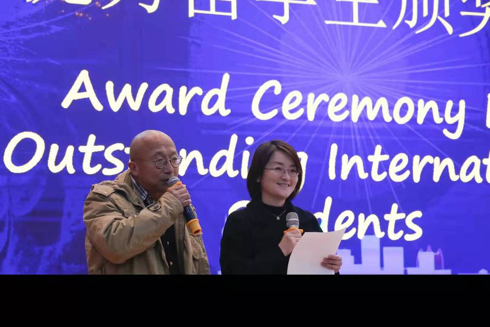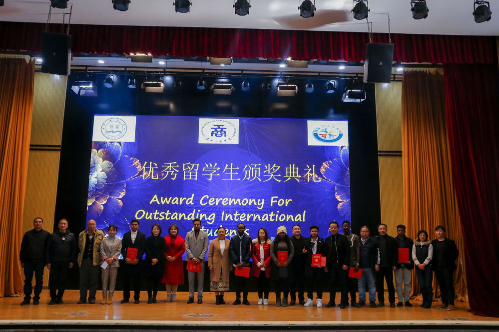 丝路学院院长助理王聃随后宣读了优秀留学生获奖名单并请获奖留学生所在分院院长上台颁奖合影,至此颁奖典礼圆满结束。