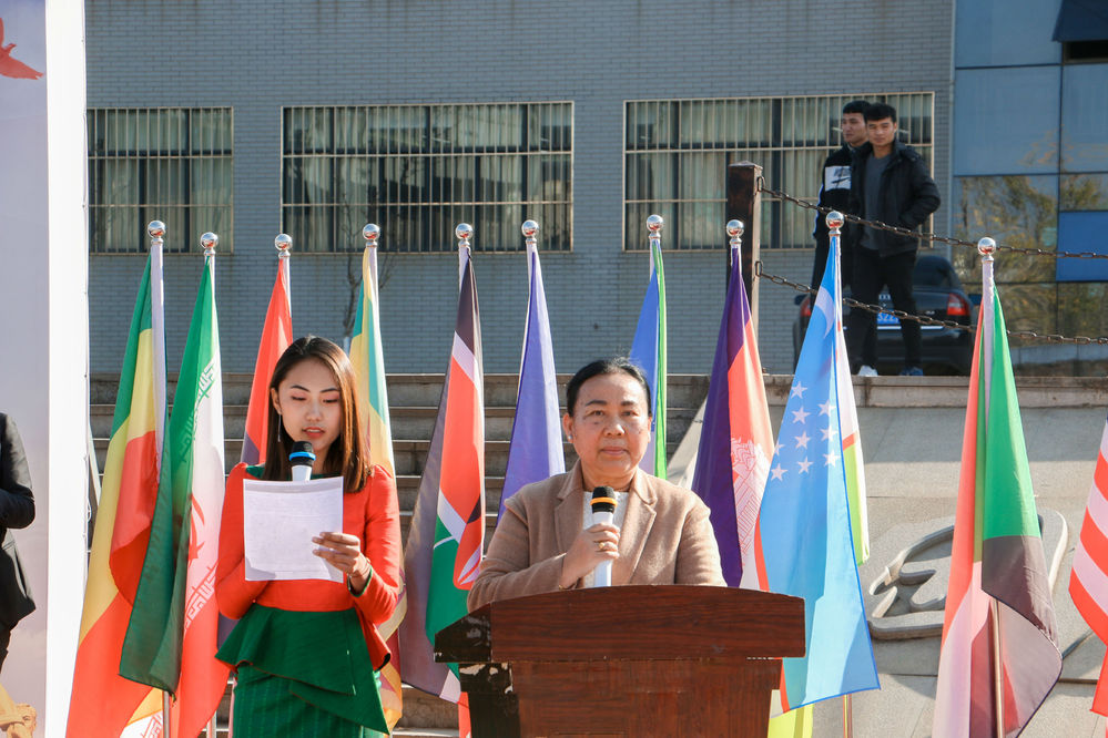李娅副校长在致辞对受到嘉奖的同学表示热烈祝贺,她借用习近平总书记在党的十九大报告中提到的话“青年一代有理想、有本领、有担当,国家就有前途,民族就有希望“来勉励同学们。她说,无论同学们来自哪个国家、无论是谁,作为青年都应该在奋斗中释放青春激情、追逐青春理想,以青春之我、奋斗之我,为这个世界铺路架桥,为社会建设添砖加瓦。