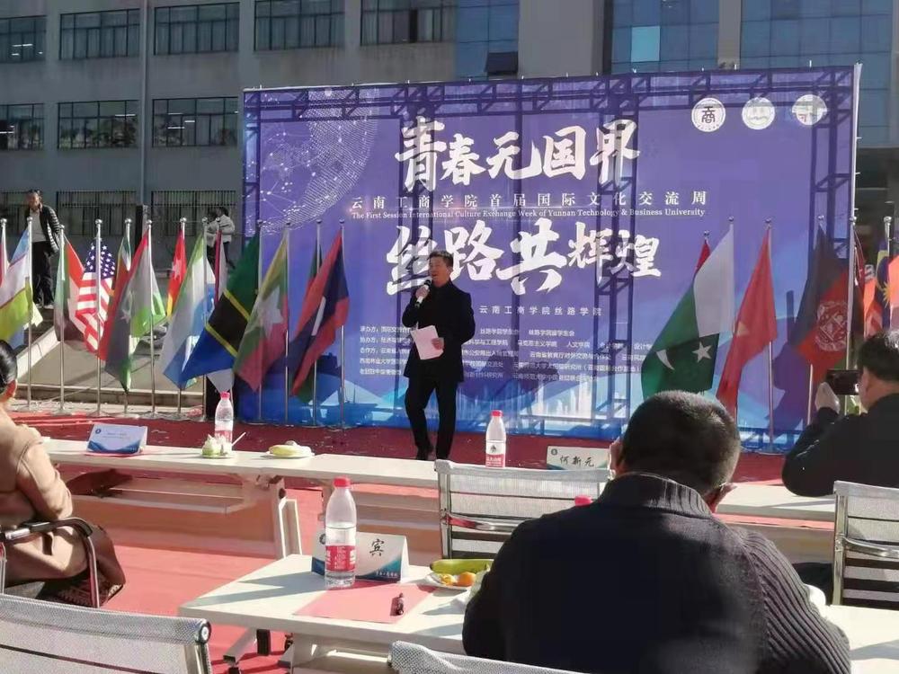 西南林业大学国际学院何新元院长也有感而发,为现场领导和嘉宾、留学生们作英文讲话,发表了对本次交流节的感想并祝国际文化交流周圆满成功。