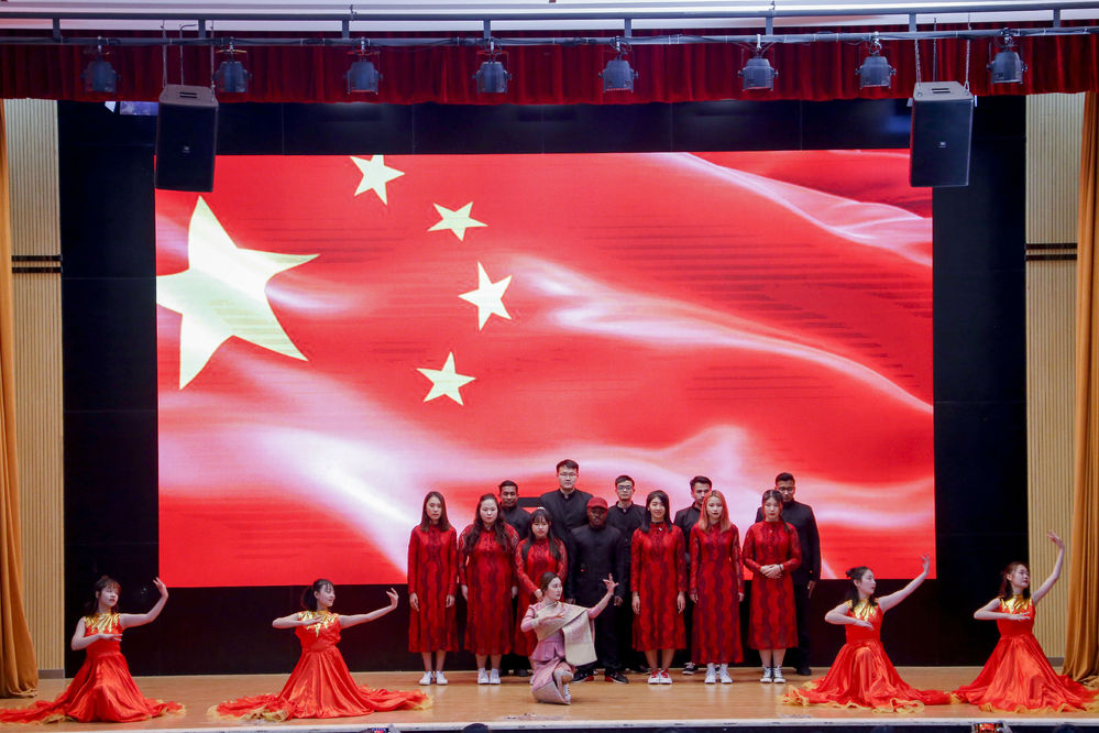 丝路学院优秀留学生颁奖仪式于新报告厅,代表我校前往红河州参加了云南省第三届留学生文化交流周的20名留学生及4名中国学生再一次将曾在活动中广获好评的汇报节目配乐诗朗诵《我爱你·中国》呈现给了大家。