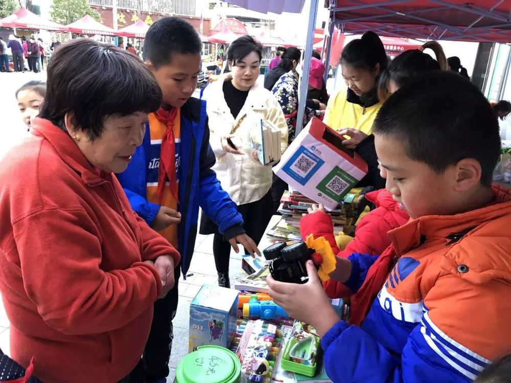 学校组织孩子进行义卖,孩子们把自己小时候的玩具、图书和手工作品等拿到爱心集市义卖,并将活动中筹集的1963元义卖款全部捐赠给金江路社区慈善超市,资助残疾人、生活困难的环卫工人等。