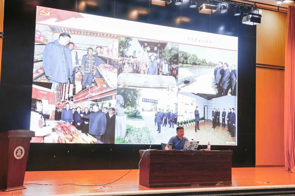 刘化军首先回顾了习近平总书记考察云南的行程及讲话内容。并就如何深刻理解习近平总书记考察云南重要讲话精神的丰富内涵和重要意义、牢记总书记殷殷嘱托,以实际行动贯彻落实习近平总书记系列重要讲话精神等方面展开了宣讲。