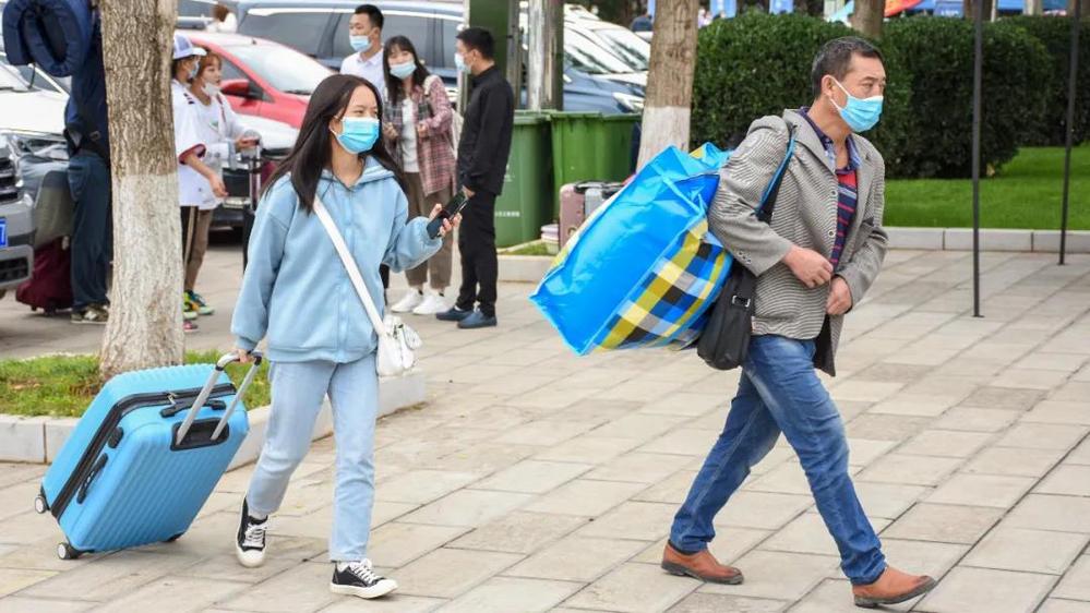 他们拖着行李、背着背包