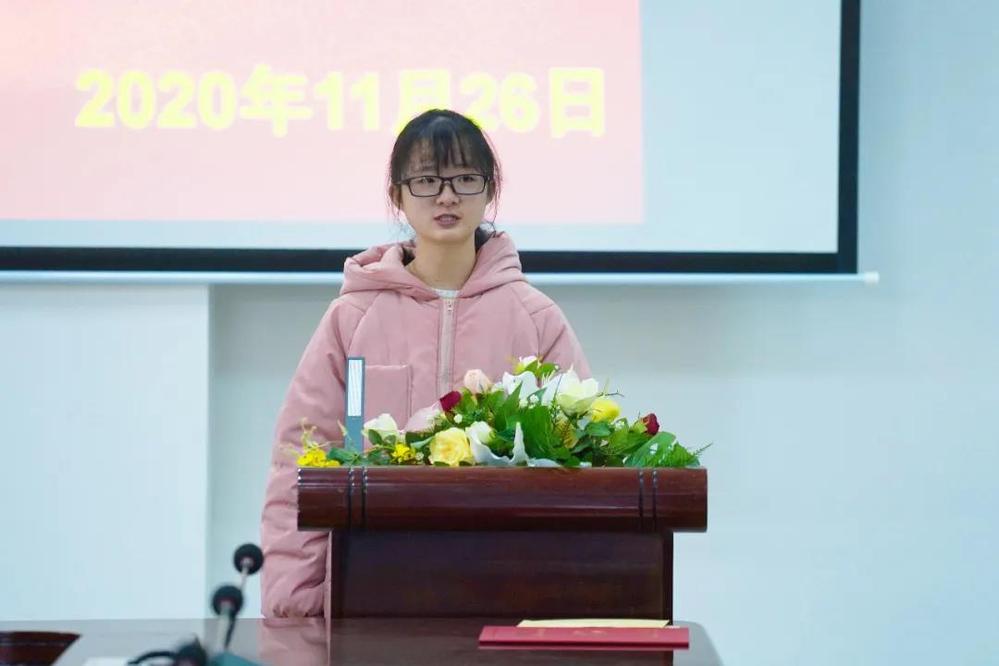 (在迈入大学之前,我真的很担心,因为我不知道能在这个地方呆多久,可是我真的很想从这里顺利毕业。走进学校之后,才发现这里原来是和想象中不一样的。我的老师告诉我说,只要我想好好读,国家、学校就不会让我因为贫困而离开这里。)学生代表葛笑莹同学表示,非常感谢企业和学校给予的这份荣誉,我会更加珍惜这个来之不易的机会,勤奋学习、刻苦钻研、不忘初心,未来更好地回报国家。