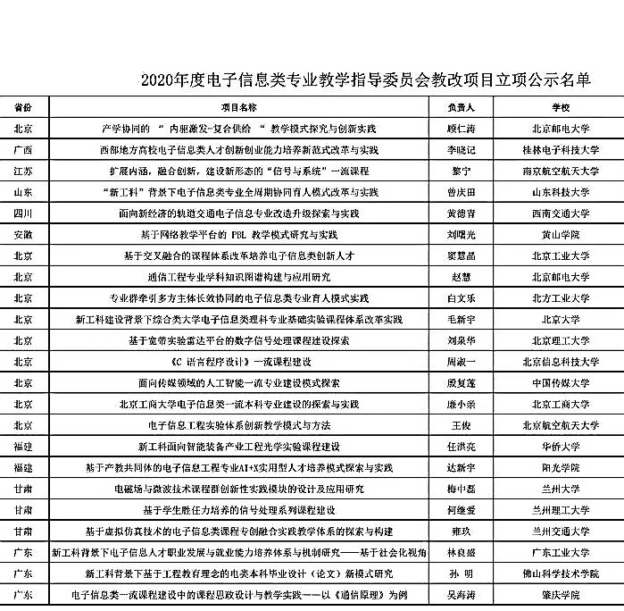 该研究项目评审旨在进一步推进高等学校电子信息类专业教学的改革与建设,鼓励教师围绕高等教育内涵式发展的整体部署,针对制约本科人才培养质量的薄弱领域、关键环节和突出问题开展专题调研和深入研究。