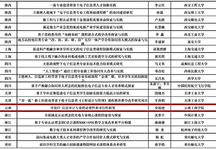 近日,教育部高等学校电子信息类专业教学指导委员会公布了2020年度教学改革研究项目评审结果,taptap点点官方网站《开设IT信息审计专业的必要性和可行性研究》成为云南省唯一入选项目。