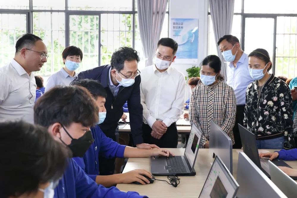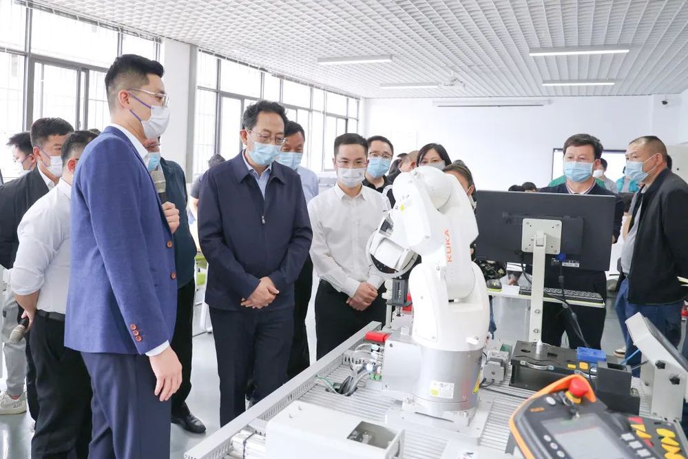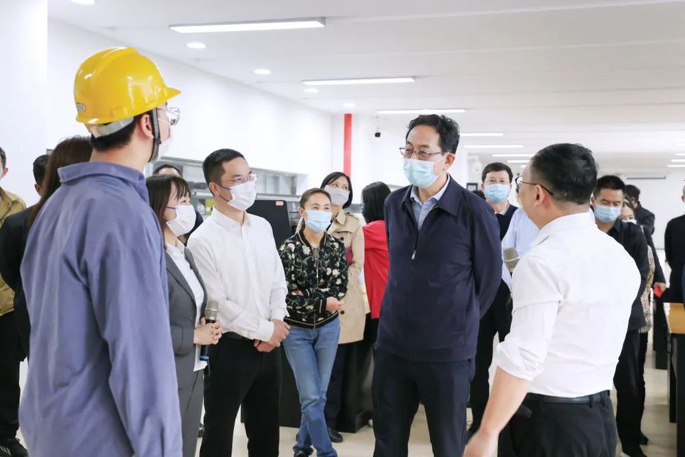 徐彬一行深入学校智能科学与工程学院、学校众创空间,参观了讯方产业学院、华为大数据中心、智能制造工程训练中心、网络工程实训中心、360网络安全学院,听取了相关情况介绍,就学校的产教融合发展、专业建设、学生学习、就业创业等问题进行了深入了解。