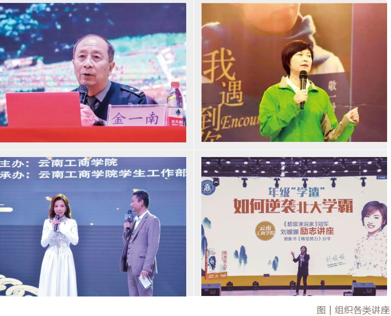 同时还邀请过中国人民解放军少将金一南、中国人民大学马克思主义学院王向明教授、战斗英雄臧雷、央视主持朱迅、敬一丹、著名探险家金飞豹等名人大咖来校讲座。