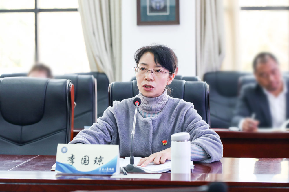 会上,党委书记李国琼就党章(修正案)学习作了重点发言,她表示,要深入理解党章修改的重大意义,要全面把握党章基本内容,要严格遵守党章各项规定,要坚决维护党章的权威性和严肃性。在谈到学校党委2023年主要工作时,她提出要加强制度建设、加强干部能力提升、抓好典型示范引领,提升党建工作质量,引领学校高质量发展。