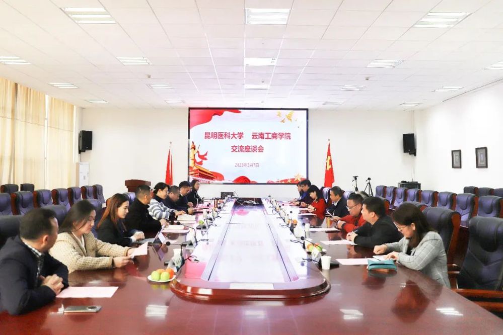 为深化开放办学,推动校校合作,3月7日,昆明医科大学夏雪山校长、吴红明副校长一行莅临我校交流调研。执行董事姬其佐,党委书记李国琼,党委副书记、校长周刚,党委副书记佘达文及党委相关部门负责人参加交流。座谈会由李国琼主持。