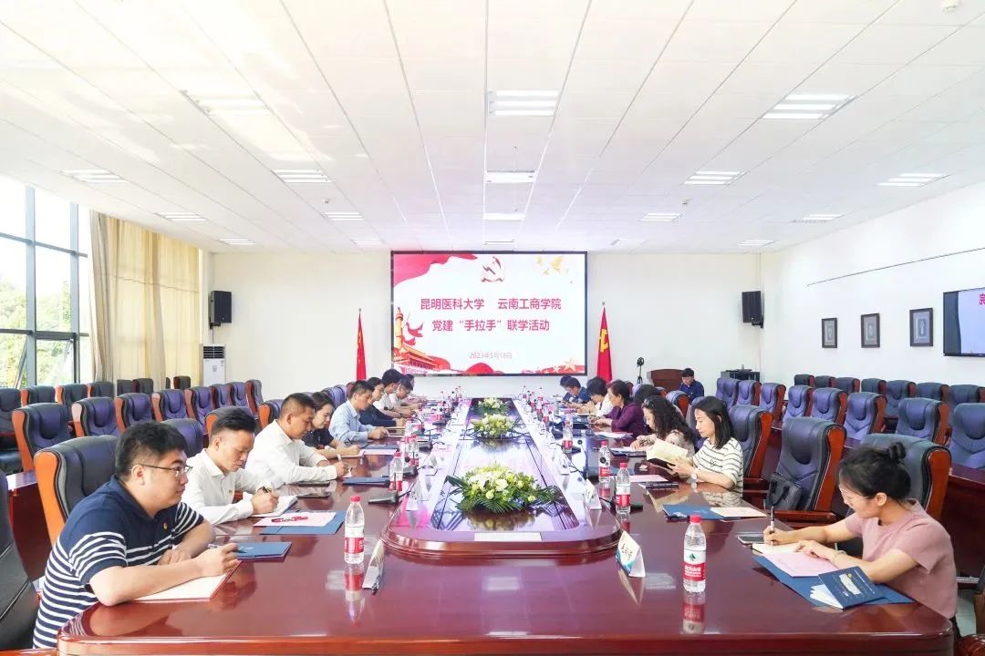 为深入学习贯彻党的二十大精神,扎实开展学习贯彻习近平新时代中国特色社会主义思想主题教育,做好调查研究工作,以高质量党建引领学校高质量发展,学校党委认真谋划、精心组织,5月18日下午,昆明医科大学到我校开展党建工作“手拉手”联学活动。学校党委书记李国琼、党委副书佘达文、学校相关部门负责人,昆明医科大学党委常委、副校长张爱云带领该校职能部门负责人共计20余人参加了联学活动。