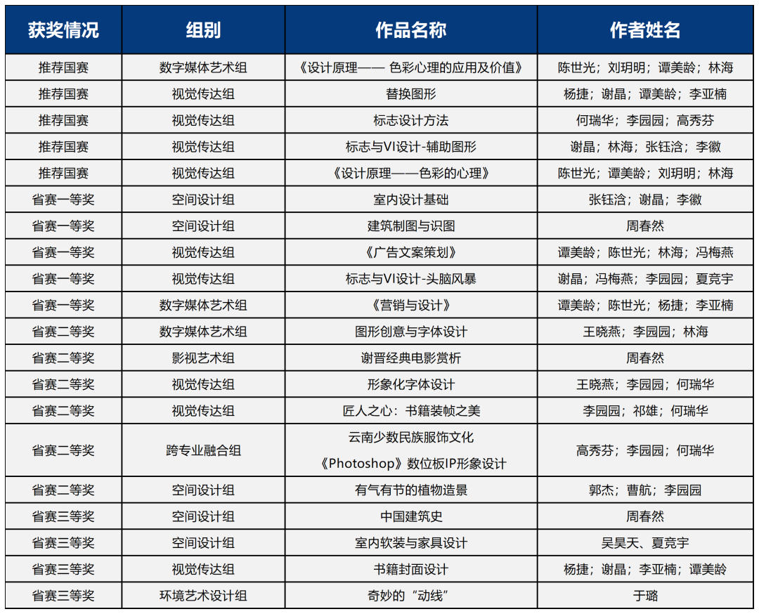 赛事开赛以来,人文艺术学院高度重视,积极组织学院教师参与,经过激烈角逐,多位老师脱颖而出,获奖数量远远高于其他参赛高校。