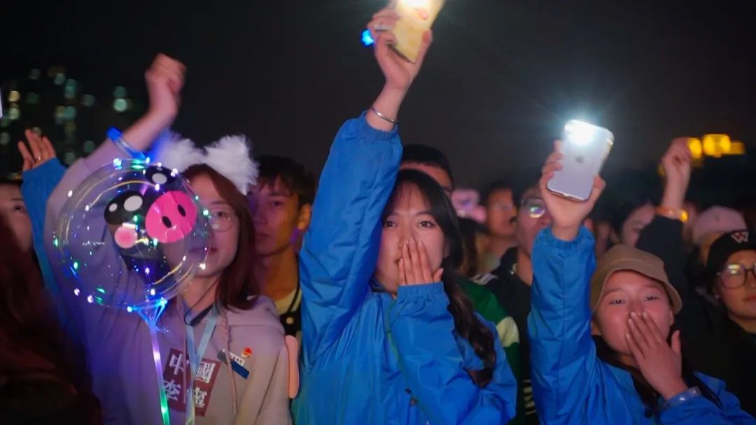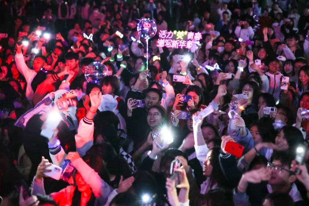 同学们手中的灯牌、手机、荧光棒