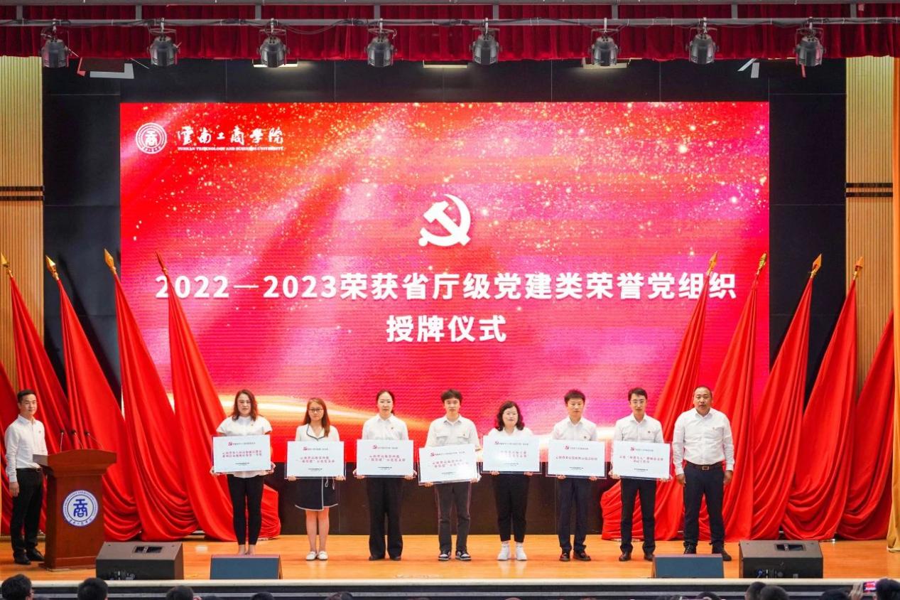 学校领导为优秀共产党员、优秀党务工作者、先进基层党组织和荣获省厅级党建荣誉的党组织颁发奖牌和荣誉证书。优秀共产党员代表吴昆、优秀党务工作者代表邹晓菊、先进基层党组织代表杨华先后发言。
