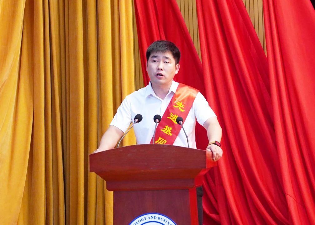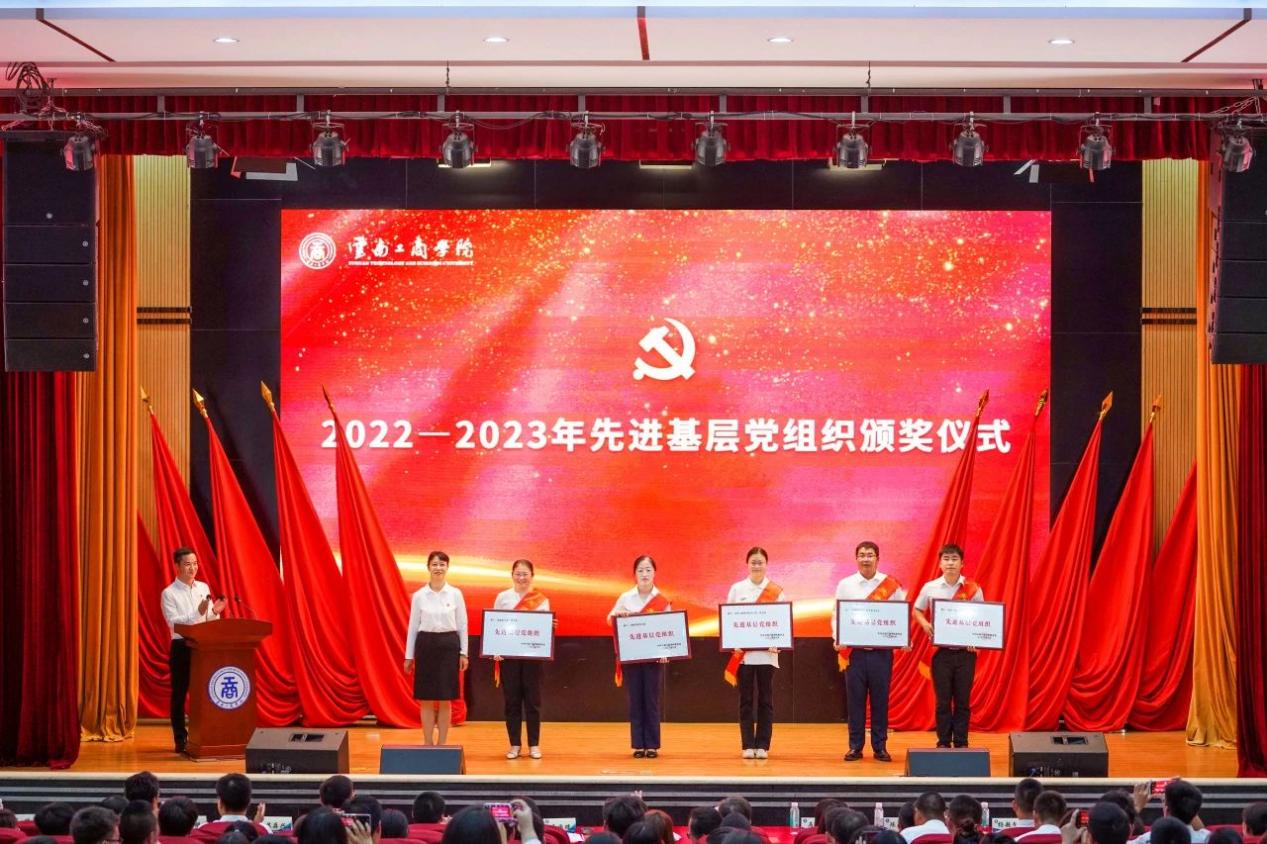 学校领导为优秀共产党员、优秀党务工作者、先进基层党组织和荣获省厅级党建荣誉的党组织颁发奖牌和荣誉证书。优秀共产党员代表吴昆、优秀党务工作者代表邹晓菊、先进基层党组织代表杨华先后发言。
