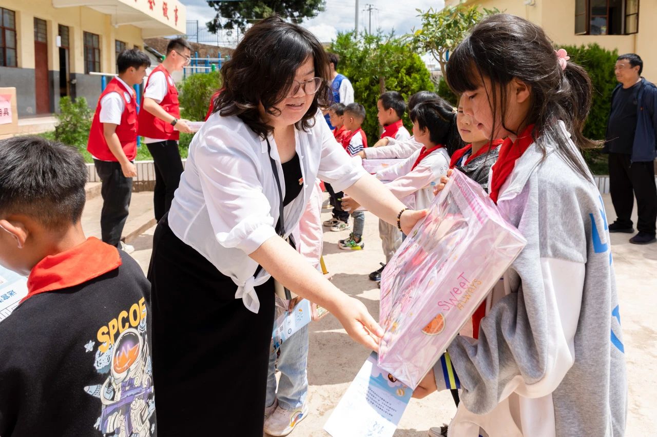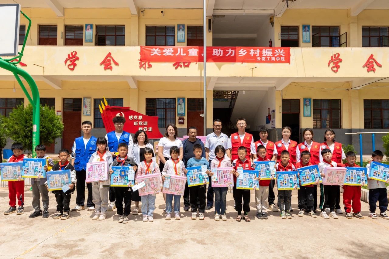 师生们首先来到当地的皎平渡镇乐华小学,为他们送上了来自云工商的礼物。这一次,大家为这里的小朋友们带来98份学习用品,里面有文具盒、笔记本、笔、削笔器、水杯等大家日常用到的文具。