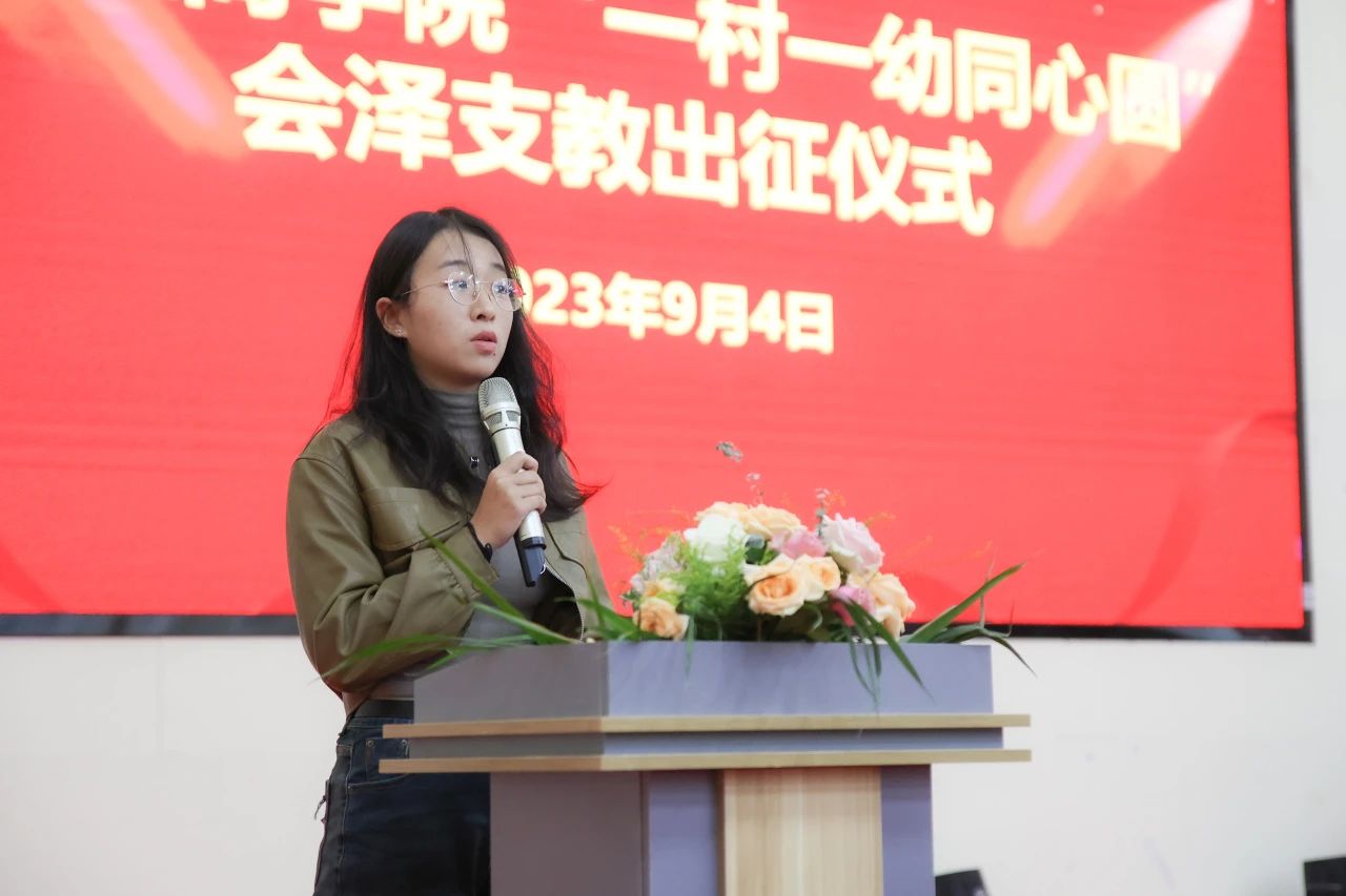 马晓红在出征仪式上进行致辞,祝愿本次支教活动圆满成功,希望同学们统一思想,提高认识,高度重视这次志愿服务工作,增强此次志愿服务的责任感和使命感;努力提升志愿服务水平,把握机遇,认真学习,完善自我,将理论知识与实践工作充分结合;将支教工作做细做实,通过支教志愿服务充分展现新时代青年的良好精神风貌。