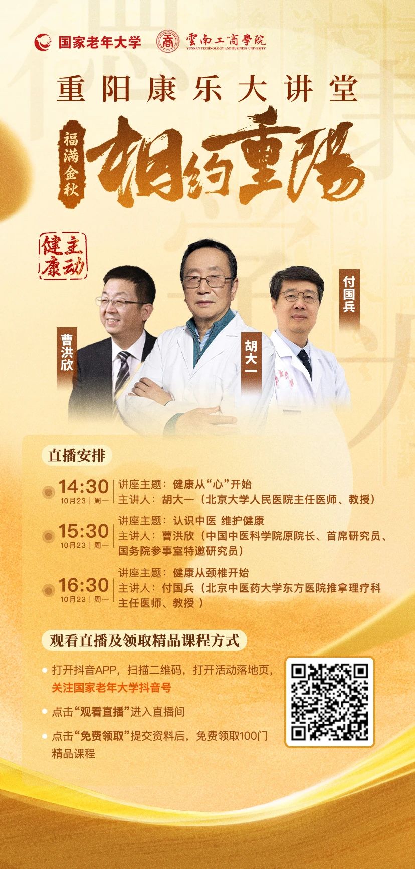 在重阳节到来之际,学校按照全国老龄工作委员会文件要求,为进一步弘扬中华民族孝亲敬老传统美德,营造养老孝老敬老良好社会氛围,结合学校实际情况,将组织开展“重阳节送给长辈一堂健康养生课活动”。