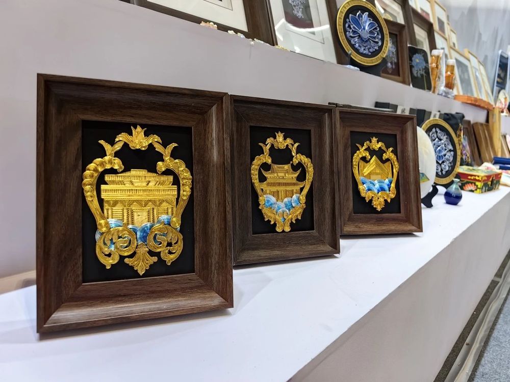 由云工商人文艺术学院谢晶教授带领创立的“翠羽银丝”名师工作室在展会上大放异彩,将中国传统点翠、花丝、景泰蓝等手工工艺与云南地方民族特色相结合,创造出精美绝伦,立体感与美感十足的手工装饰画,在展区内吸引无数人的眼球,大家纷纷驻足细细欣赏作品,观察纹路,拿出手机记录下来。