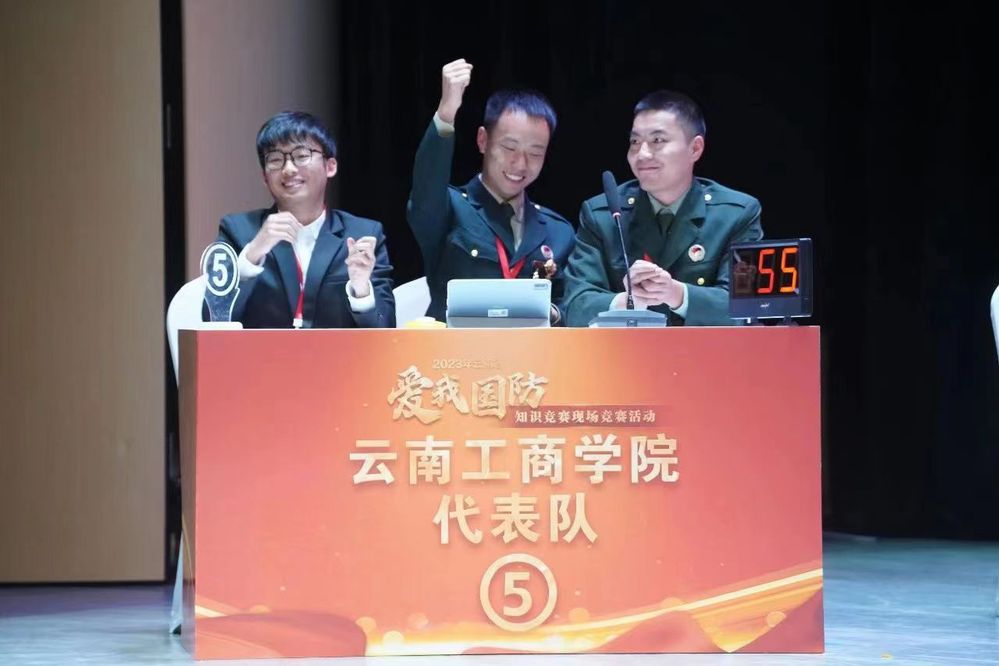 比赛共设置了勇往直前(必答题)、抢滩登陆(抢答题)、险中求胜(风险题)三个环节,现场氛围热烈,参赛选手们沉着冷静,认真审题作答,队员间配合默契。云工商代表队团结奋进、顽强拼搏,充分展现了他们扎实的国防知识储备和强大的心理素质,经过激烈的比拼,最终以高出第二名45分的好成绩胜出。