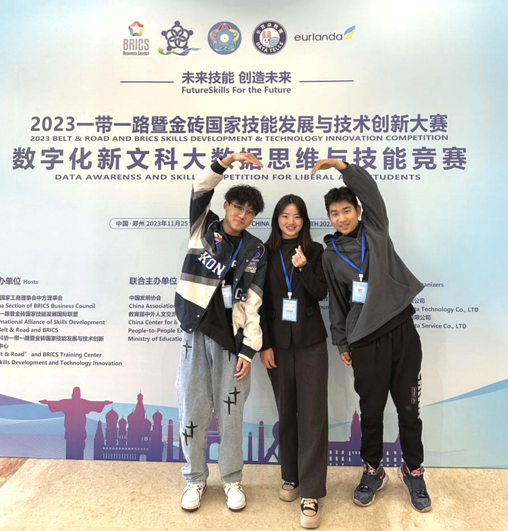 同样获得国赛二等奖的欧阳兆辰同学认为学校所学的知识在比赛中发挥了决定性作用,“这个比赛要求我们具备一定的大数据思维和技能,数字化新文科大数据思维与技能竞赛选取企业典型项目需求,围绕实际的企业项目案例研究分析设计竞赛内容,竞赛任务就是项目工作任务,这些知识和技能在学校上课有接触过。学院根据行业发展趋势进行的课程体系规划,为我们参加比赛提供了坚实的学科基础和专业支持。”
